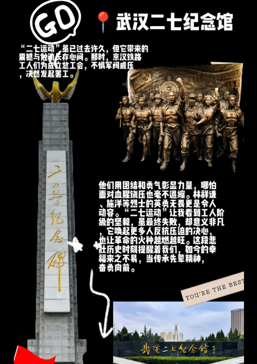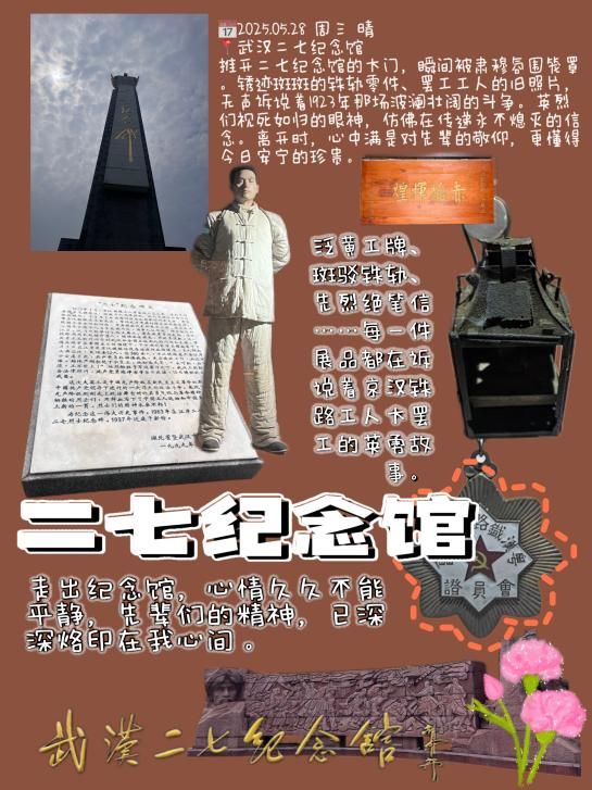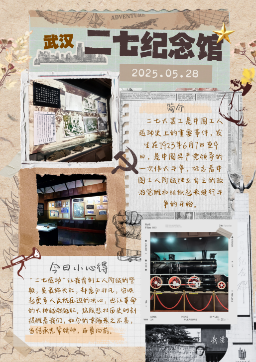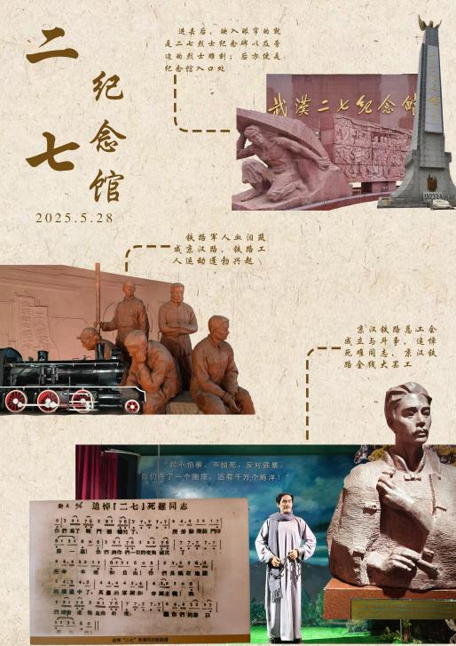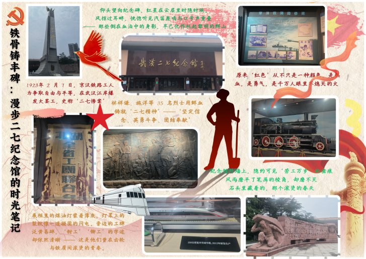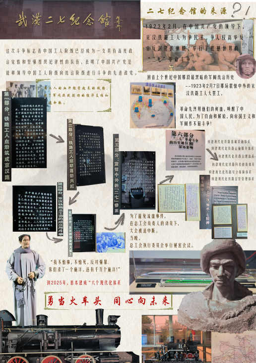 为深入学习贯彻习近平新时代中国特色社会主义思想和党的二十大精神,加强学生党支部的思想建设,激发党员的爱国热情,增强党员的历史责任感和使命感,设计工程学院学生党支部于2025年5月25日组织参观武汉二七纪念馆,开展学习实践活动,党员们通过沉浸式学习革命历史,深刻感受革命先烈的英勇事迹和崇高精神。