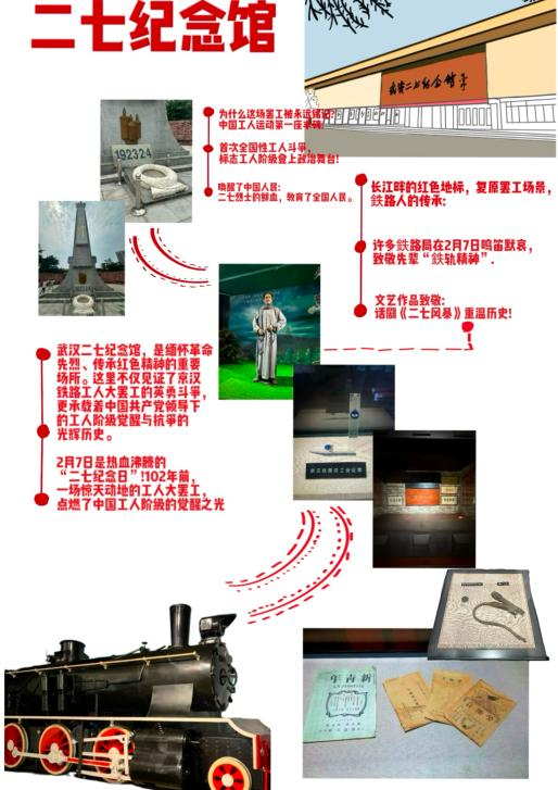 武汉二七纪念馆是为纪念1923年京汉铁路工人大罢工及“二七惨案”而建的专题性纪念馆,是全国首批爱国主义教育示范基地,以实物、图片、场景复原等形式全景式展现了中国工人阶级早期的斗争史。