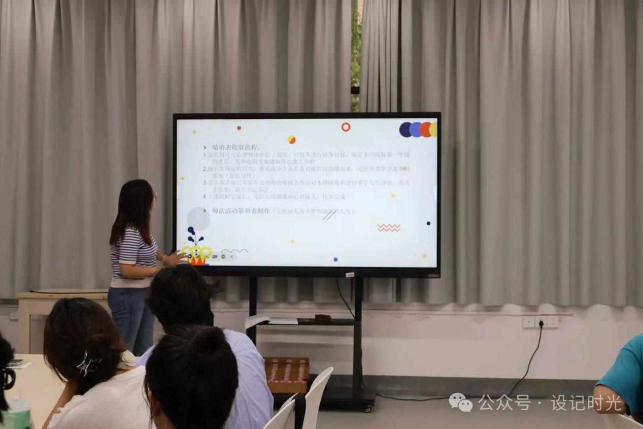 此次设计工程学院艺心心理工作站新学期工作会议的成功召开,进一步明确了全体成员的工作方向与目标,有效增强了团队凝聚力与使命感。未来,相信在全体成员的共同努力下,艺心心理工作站将持续发挥专业作用,为学院学生心理健康工作高质量发展贡献更大力量。