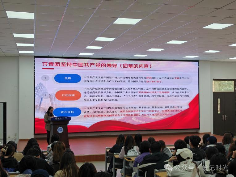 图二:唐林丽老师围绕“共青团和优秀共青团员”展开讲解
