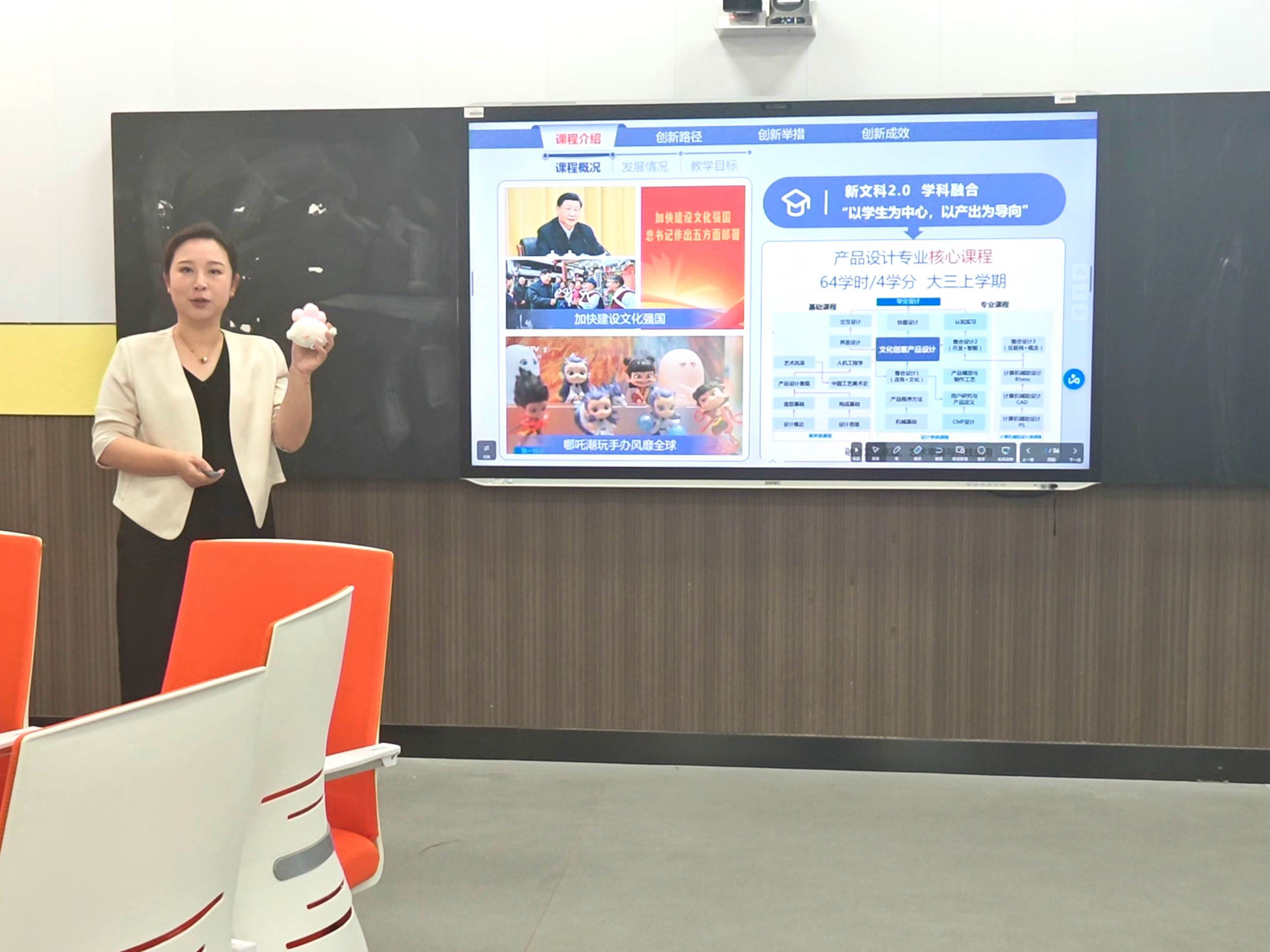 本次模拟汇报是学校精心组织教学创新支持工作的组成部分,旨在通过实战演练、专家点评、同行互助等方式,不断打磨参赛教师的课程展示内容与教学创新亮点,全面提升竞赛表现力。王珏老师参赛课程为《文化创意产品设计》,课程以“文以载道,创意新生”为核心理念,围绕“文化传承+创意表达+产教融合”展开教学设计,已建立起涵盖知识重构、实践重塑与竞赛孵化的系统化育人机制,先后获评校级重点建设课程、湖北省一流本科课程等多项荣誉。