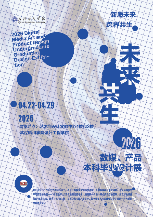 我们正站在一个历史性的转折点上。当人工智能重构创造的逻辑,当虚实边界在指尖消融,当可持续成为不可回避的命题——"新质生产力"不仅是时代的号角,更是新一代设计师必须回应的召唤。本次毕业设计展以"新质未来,跨界共生"为主题,正是2026届产品设计、数字媒体艺术设计专业学子对这一时代命题的集体应答。