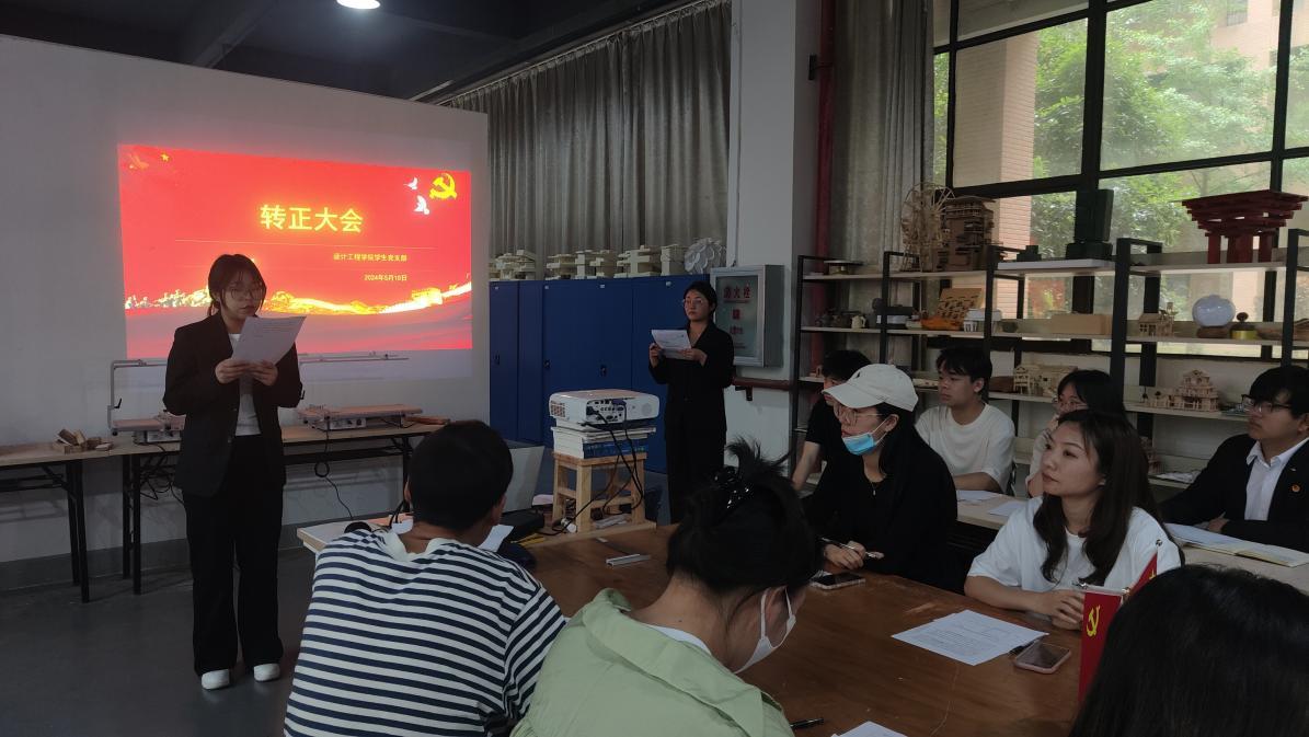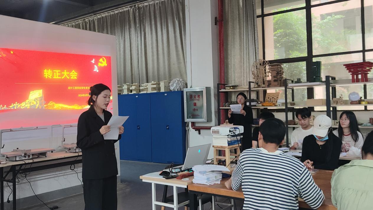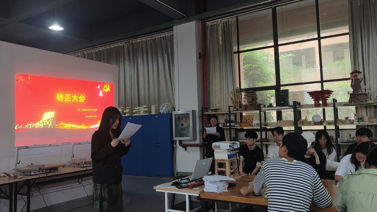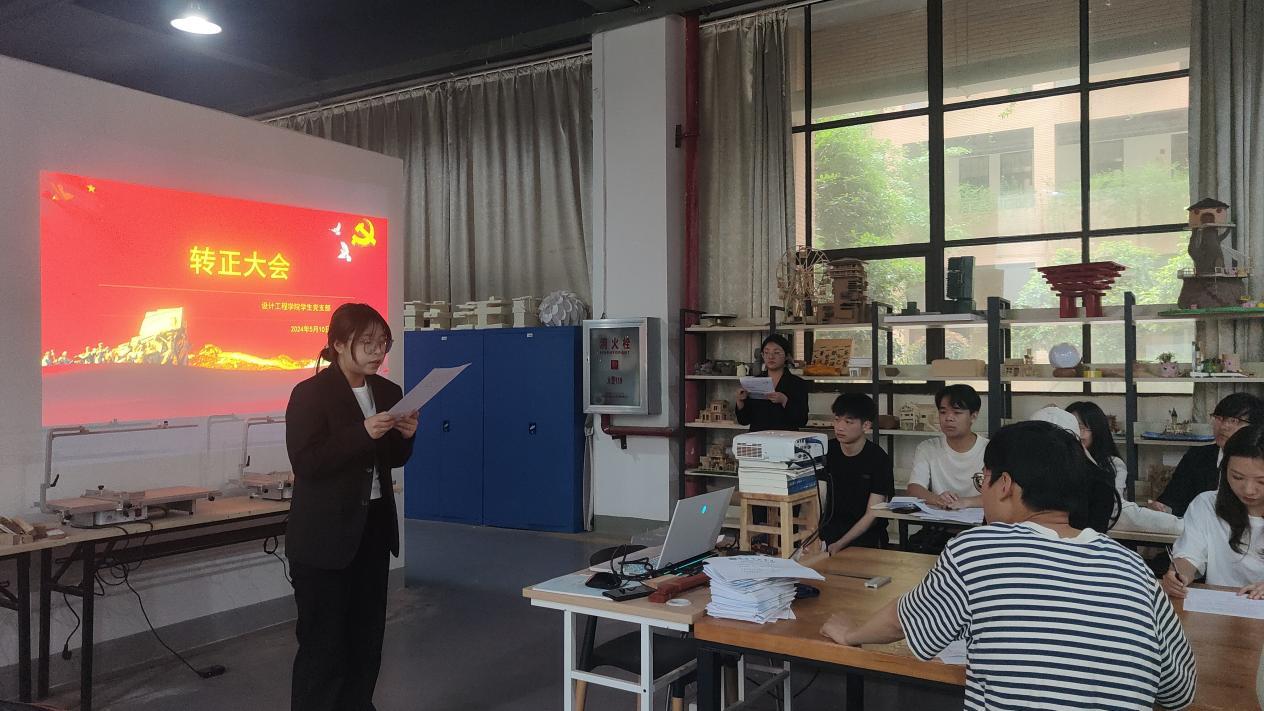 为了进一步加强党员队伍建设,严格把控发展党员质量,保持党员队伍的先进性和纯洁性。根据支部发展党员工作计划,设计工程学院学生党支部于2024年5月10日在综1-116-1召开了预备党员转正大会,讨论陈嘉怡等三名预备党员转正事宜。会议由设计工程学院学生党支部组织委员谭晓晓同志主持,与会人员为支部全体同志。