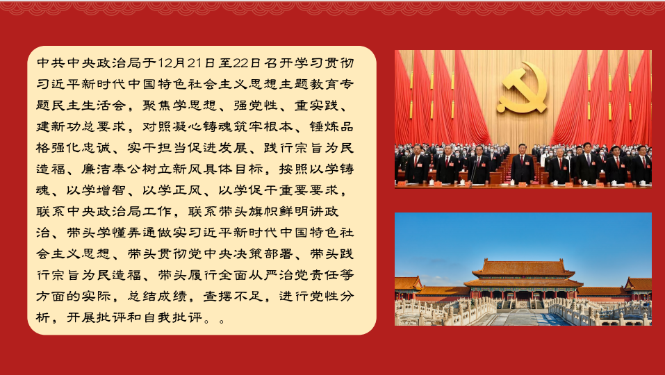 本次主题学习内容分为三个部分:学习习近平总书记重要讲话《以美丽中国建设全面推进人与自然和谐共生的现代化》、认真学习习近平总书记在中共中央政治局民主生活会上的重要讲话精神、学习习近平主席二〇二四年新年贺词。
