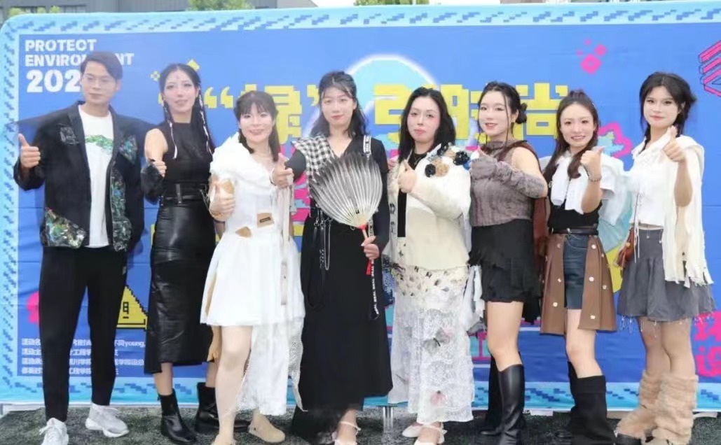 设院教师组压轴出场,三幺三教师天团穿着设计所设计的环保与时尚兼具的服装,犹如一道靓丽的风景。