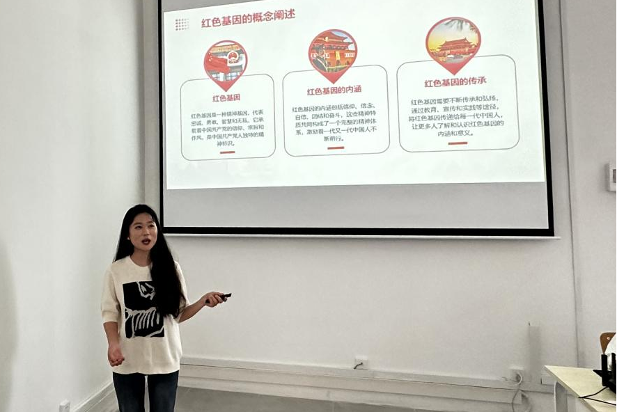 产品2203鲍佳蕊以“赓续红色血脉,凝聚奋进力量”为主题进行演讲,关于以习近平新时代中国特色社会主义思想为指导,全面贯彻党的二十大精神,深入贯彻习近平总书记关于青年工作的重要思想,高扬理想主义,心系广大青年,锐意开拓进取,勇于自我革命。