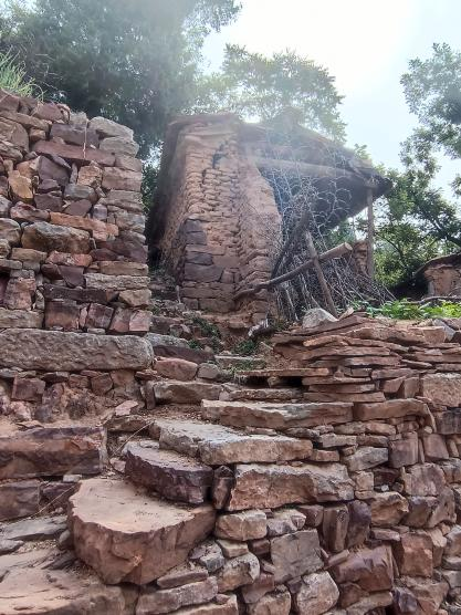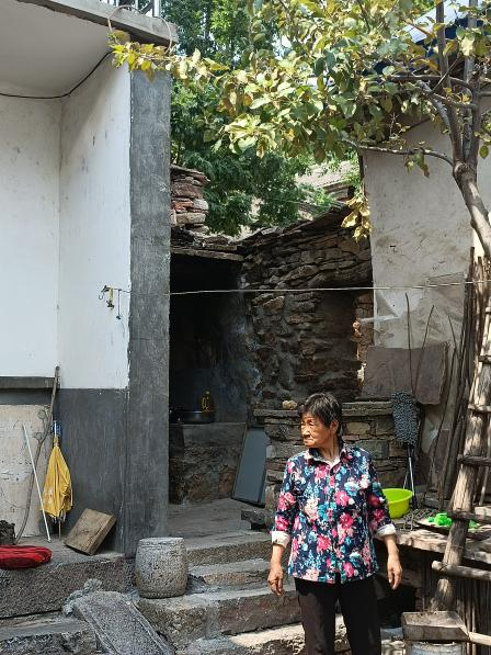 真正进入到村落当中之后,我感受到的是浓浓的“人情味”,这里大多数都是老年人为主。这里的路、房子......都是石头建成的。房子下部位较大的石块,中部为较小的石块,上面是砖石砌的,还在砖的外面糊上一层泥,可以起到保温的效果,这也是很独特的建筑。走了没几步,看见了几位老人正拿着锄头往外走,看到我们一群人的到来,热情的拿出他们这里最朴素也是最实用的垫子,和我们聊了几句,就继续出门干活了。出门竟然忘记了锁门,我们提醒他,老爷爷竟然说:“没事,你们可以进去遮荫喝水。”说完头也不回的就走了。这句话真诚而热烈的冲击到我的心灵,让我不由自主的想起了我的爷爷奶奶......