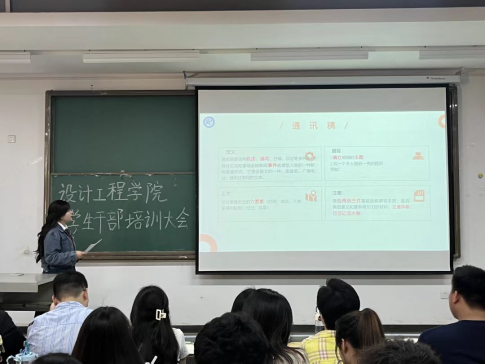 (通讯员:黄慧萍)蝉鸣中迎来了盛夏,大学生活按下了加速键,四月匆匆开场,学生会的同学们在设计工程学院学生会学习的时间也在不知不觉中悄悄变长。2023年4月19号,设计工程学院学生会学生干部培训大会在教一210展开,本次培训由设计工程学院学生会主席李安晓主讲。
