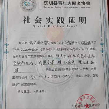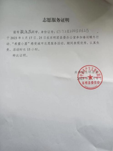 习近平总书记说:“奋斗是青春最亮丽的底色,行动是青年最有效的磨砺。有责任有担当,青春才会闪光。”为传承红色基因,担负青春使命,谱写新时代的青春篇章,作为大学生的我们理应积极投身于实践锻炼、志愿服务中去。在这个疫情严峻的时刻,身为第一批返乡大学生,我回到家乡积极响应我们家乡的号召,参加了团县委开展的青年志愿者服务春运“暖冬行动”。