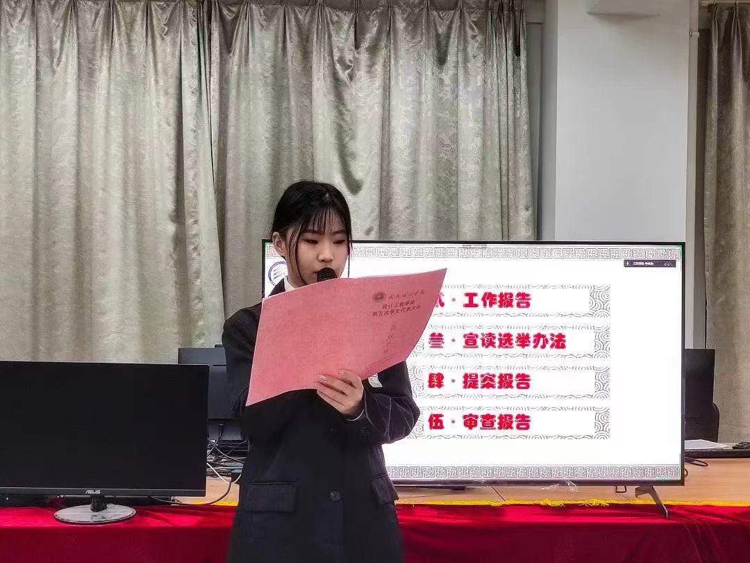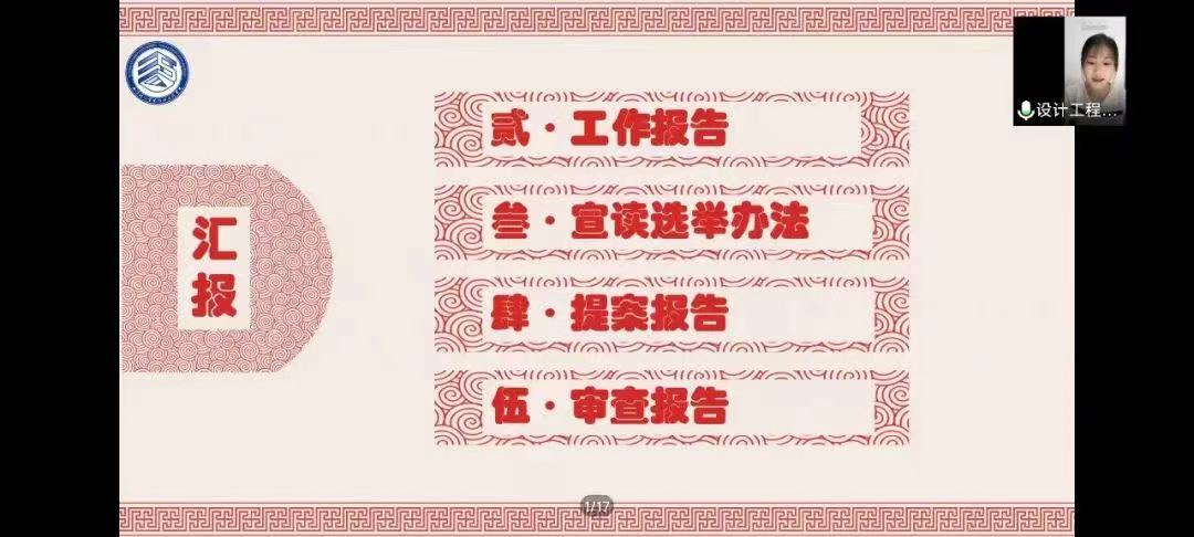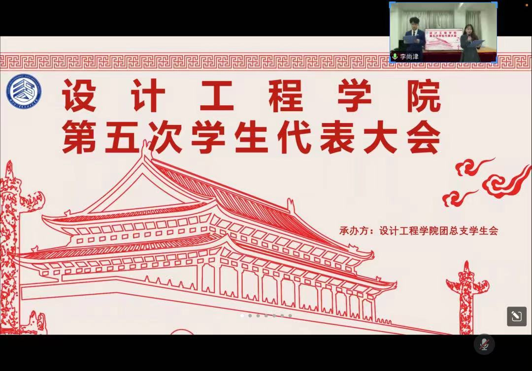 2022年11月29日星期二下午五点半,由于疫情原因,设计工程学院第五次学生代表大会活动以线上线下相结合的方式举行。