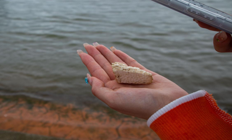 实践团队成员来到了江汉路江滩,小雨淅淅沥沥。虽然说是下雨,但是仍然有许多人在江边,家长带着孩子在水边玩水,甚至还有许多游泳者。在拍摄的过程当中,成员发现江边有一些漂浮着的白色污染物。有人会将这些垃圾捡起来,但是不可避免的现象是仍有很多人,对这些垃圾熟视无睹,尽管已经飘到了他们的脚边,他们也不会把垃圾捡起来。在江边玩的大部分都是小朋友,但是在看到这些垃圾的时候,他们的家长并不会教育他们把垃圾捡起来,甚至家长根本就不会主动把垃圾捡起来。