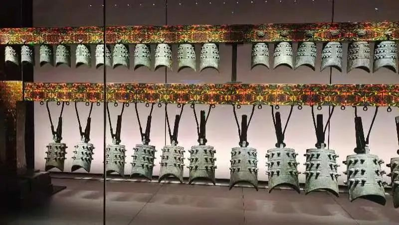 步伐仍在继续,另一小组则是直奔大厅右侧的曾侯乙展厅。在展厅内他们看见了闻名于世的曾侯乙编钟,还一一领略编钟钟梁、彩漆撞木、曾侯乙编磬等历史文物。据展厅讲解员介绍,“曾侯乙”展览是对原设在综合馆展览的全新改陈。新展览位于南主馆一、二层,多角度阐释曾侯乙文物,体现古代礼乐文明,凸显文物艺术特色。三期新馆展示现场星空下的编钟,将历史的厚重与文化的浪漫巧妙地融合,这承载着荆楚文化的宝贵珍品背后,都有着属于自己的故事。江汉诸姬尽灭于楚,唯曾独存。