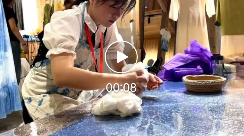 赵师傅:“我从大二开始接触到浆染知识,从最初接触到浆染知识开始,就对传统技艺的热爱与敬畏。这些非遗手工艺承载着先辈们的智慧和心血,它们是民族文化的瑰宝,每一针每一线都蕴含着深厚的历史和情感,这种传承的责任让我无法割舍。”