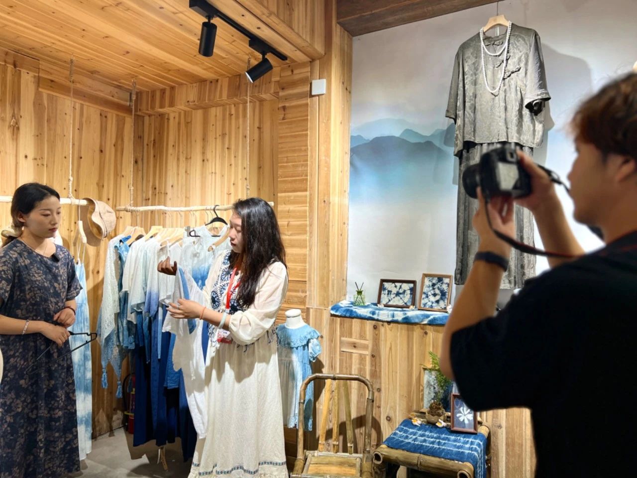 采访组:“赵师傅,本店徽系浆染主题的服饰,与其他地区的浆染工艺有何优势?”