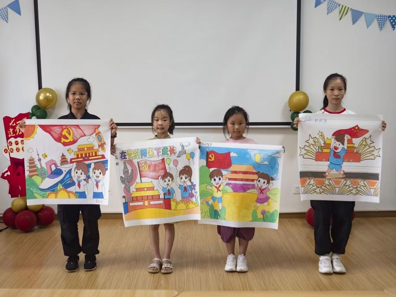 此外,为了庆祝建党103周年的到来,我为乡村执画笔团队结合暑期社会实践活动,为孩子们精心筹备了一场别开生面的主题绘画活动。团队成员给孩子们准备了丰富的绘画工具和材料,让孩子们在画布上尽情地挥洒自己的想象和创意,旨在引导其通过绘画这一艺术形式,深入了解党的光辉历史,真切感受党的伟大与崇高。通过这样的实践活动,期望孩子们能够在艺术的熏陶下,更加坚定对党的信念,更加自觉地肩负起新时代赋予的历史使命。