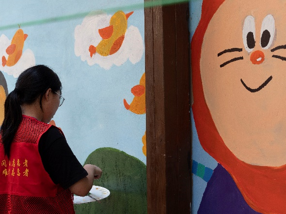 图1:志愿老师进行绘画