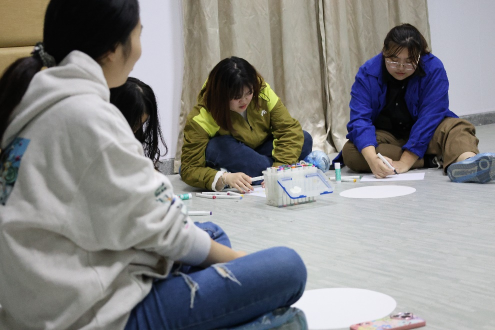 在繁忙的大学生活中,大学生们时常被各种压力所困扰,心灵渴望得到片刻的宁静与释放。为了帮助同学们找到内心的平静,释放累积的压力, 10月23日下午14:30,设计工程学院数媒2102班的九名同学在心理中心114团辅室参加王丹老师组织的“写意曼陀罗艺术治疗减压赋能团体辅导”。