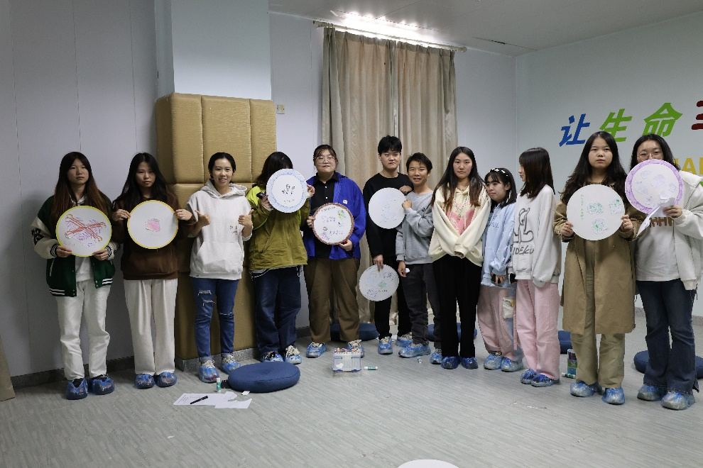 活动最后,王老师带领同学们进行了总结。回顾了整个活动的流程与感受,分享了彼此的成长与收获。通过这次写意曼陀罗艺术治疗减压赋能团体辅导,同学们不仅学会了用艺术的方式来释放内心的压力与情绪,还学会了倾听、表达与分享。