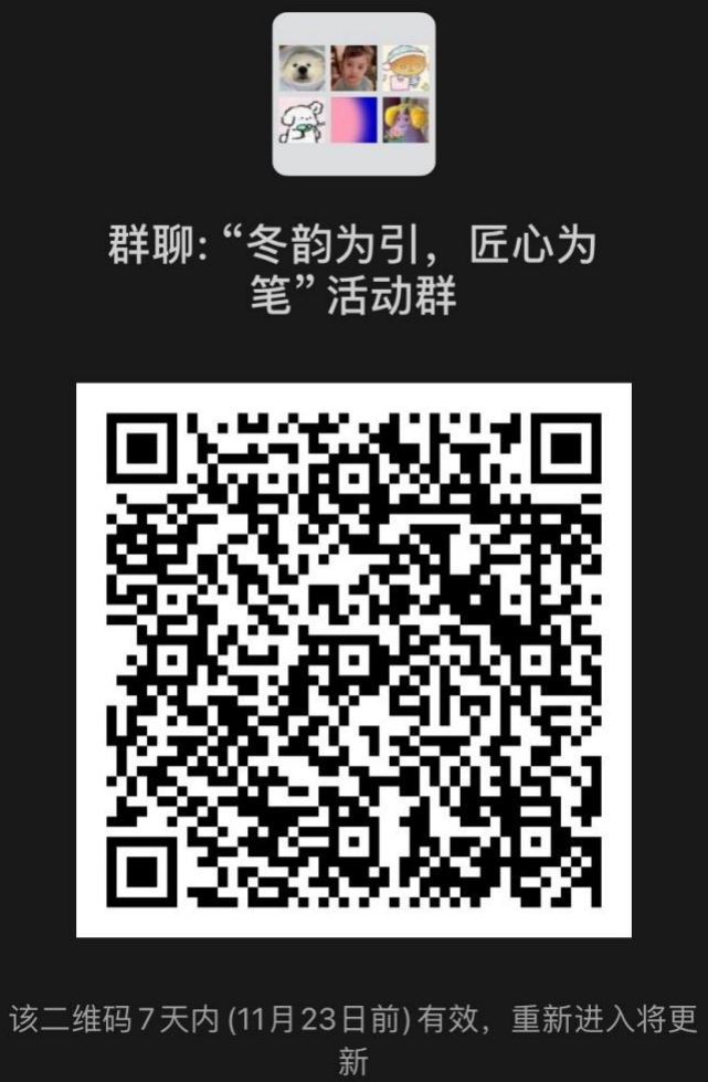 (注:请参赛选手扫描下方二维码进群,并备注:班级+姓名。后续有关设计作品的疑问以及其它具体事宜可在群内咨询工作人员)