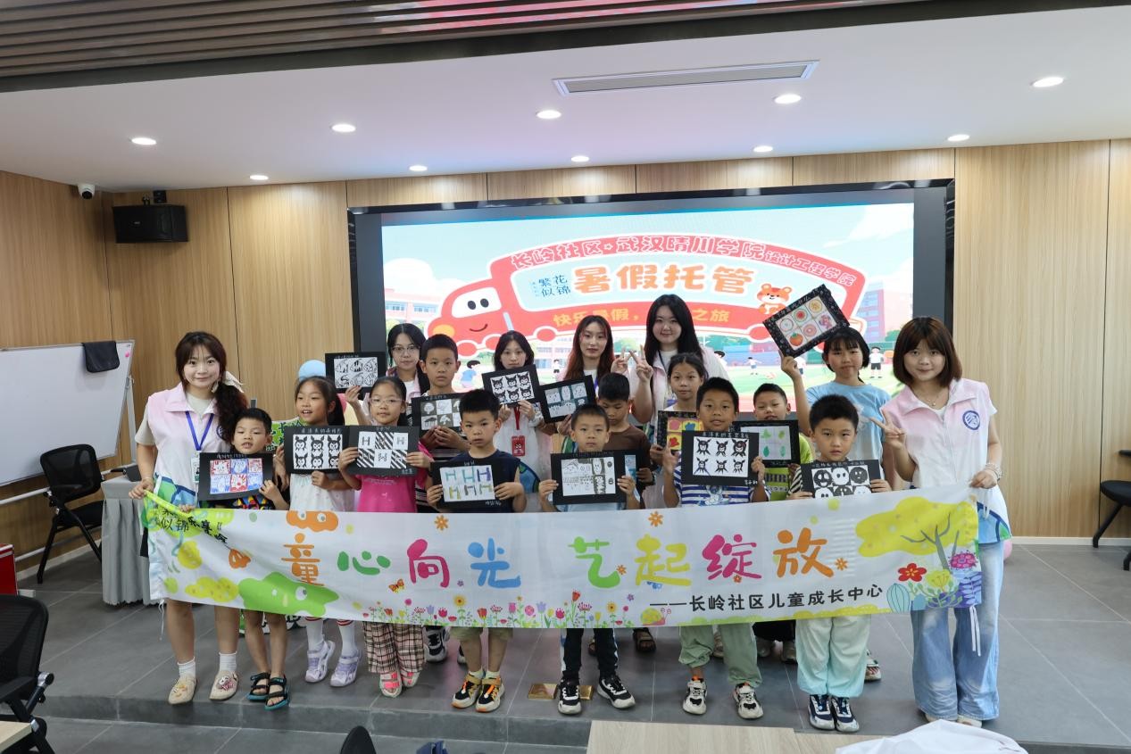 武汉晴川学院设计工程学院“美学育苗,艺术润心”暑期社会实践团队成员于2025年7月4日在长岭社区花园班和锦园班进行了美育支教,开设了不同的特色课程。团队成员将黑白卡纸与彩笔递给孩子们,当他们用稚嫩的笔触解构世界的轮廓,美育的力量便在这些细微处悄然生长。
