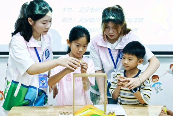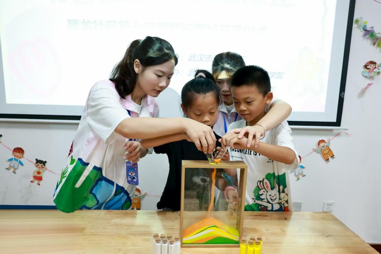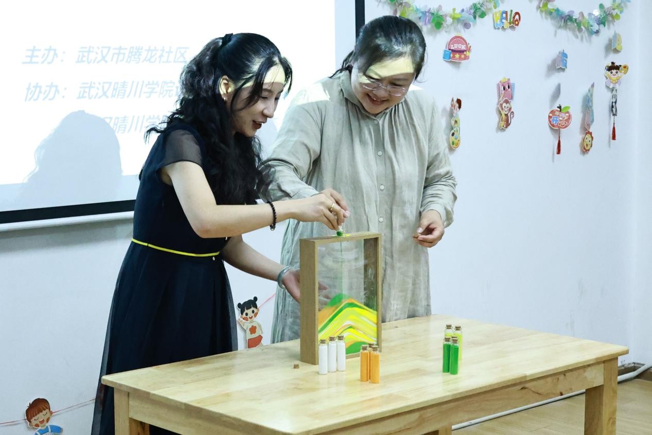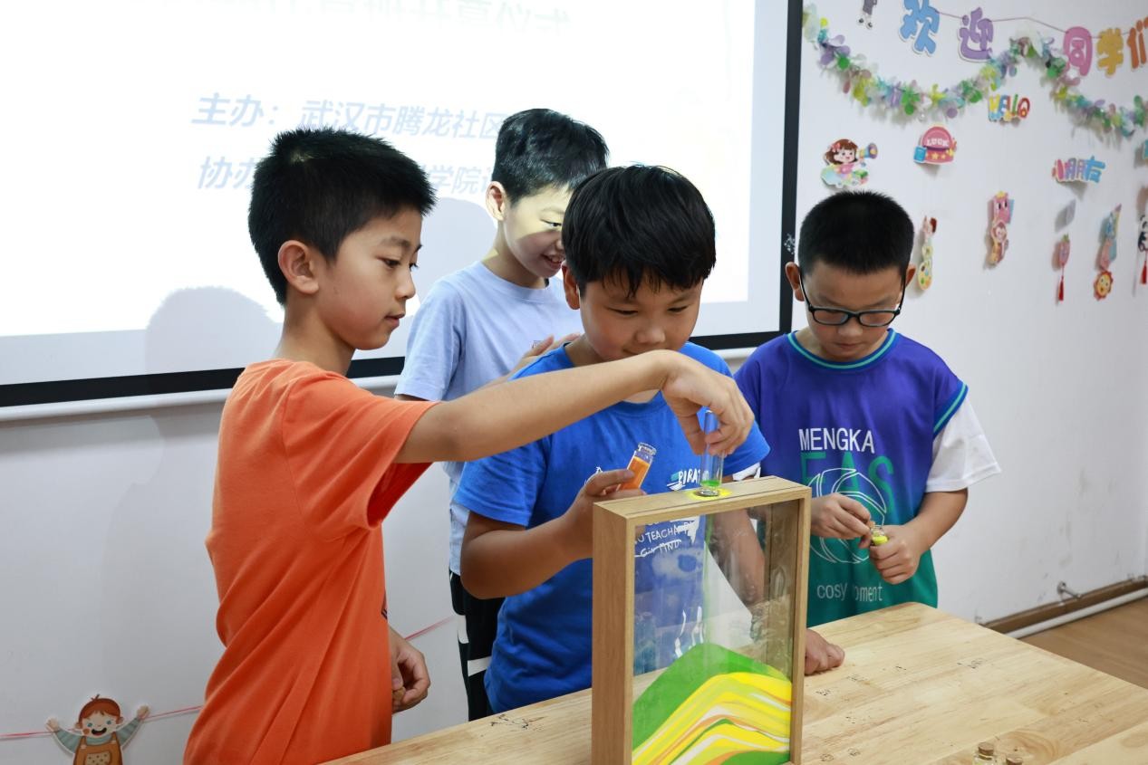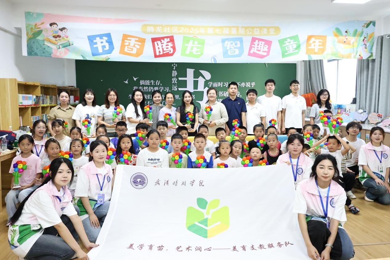 武汉晴川学院设计工程学院“美学育苗,艺术润心”暑期社会实践团队2025年7月7日在腾龙社区和长岭社区分别开展美育实践。团队以“科学融美育,传统汇创意”为理念,为孩子们带来趣味与深度兼具的体验。