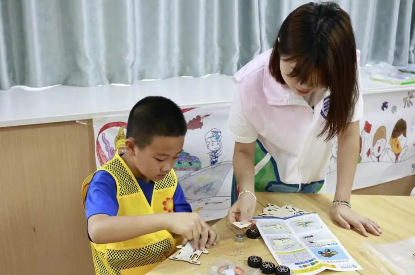 活动现场,最吸引孩子们的当属太阳能汽车与飞机模型制作环节。实践团队的成员们化身“科学导师”,先通过生动的动画短片讲解太阳能转化为动能的原理,用“阳光如何让玩具动起来”的趣味提问引发思考。随后,孩子们在指导下小心翼翼地拆解零件包,对照图纸组装齿轮、连接电路、粘贴太阳能板,专注的眼神里满是对科学的好奇。当遇到零件卡壳、线路接错等问题时,大家或互相讨论,或举手求助,在试错与调整中逐渐掌握技巧。当模型在手中举起、仿佛即将冲上云霄时,一张张笑脸上洋溢着成功的喜悦,对绿色能源的认知也从书本概念变成了直观感受,科学与美育的种子在心中悄然萌芽。