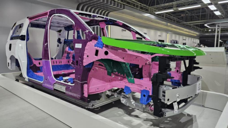 作为东风汽车集团旗下的高端智慧新能源品牌,岚图汽车以“科技赋能+智能制造”为核心竞争力。在专业讲解员的带领下,同学们首先来到生产车间,观摩了从冲压、焊接到总装的全流程生产工艺。在白车身展示区,色彩鲜明的车身骨架及其标注的“铝镁硅合金”、“四层分区七重正碰保护”等技术细节,直观展示了岚图在车身轻量化与安全性能上的全球领先技术突破(如2000兆帕热成型钢材技术)。讲解员介绍:“岚图通过材料创新与结构优化,让车身既‘轻’又‘硬’,在保证安全的同时提升续航效率。”